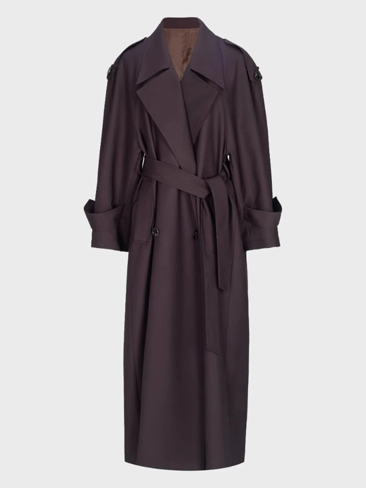 معطف Lautaro ربيعي خريفي كبير الحجم من الكاكي طويل جدًا بنفسجي غامق للنساء معطف أنيق مزدوج الصدر فاخر 2025