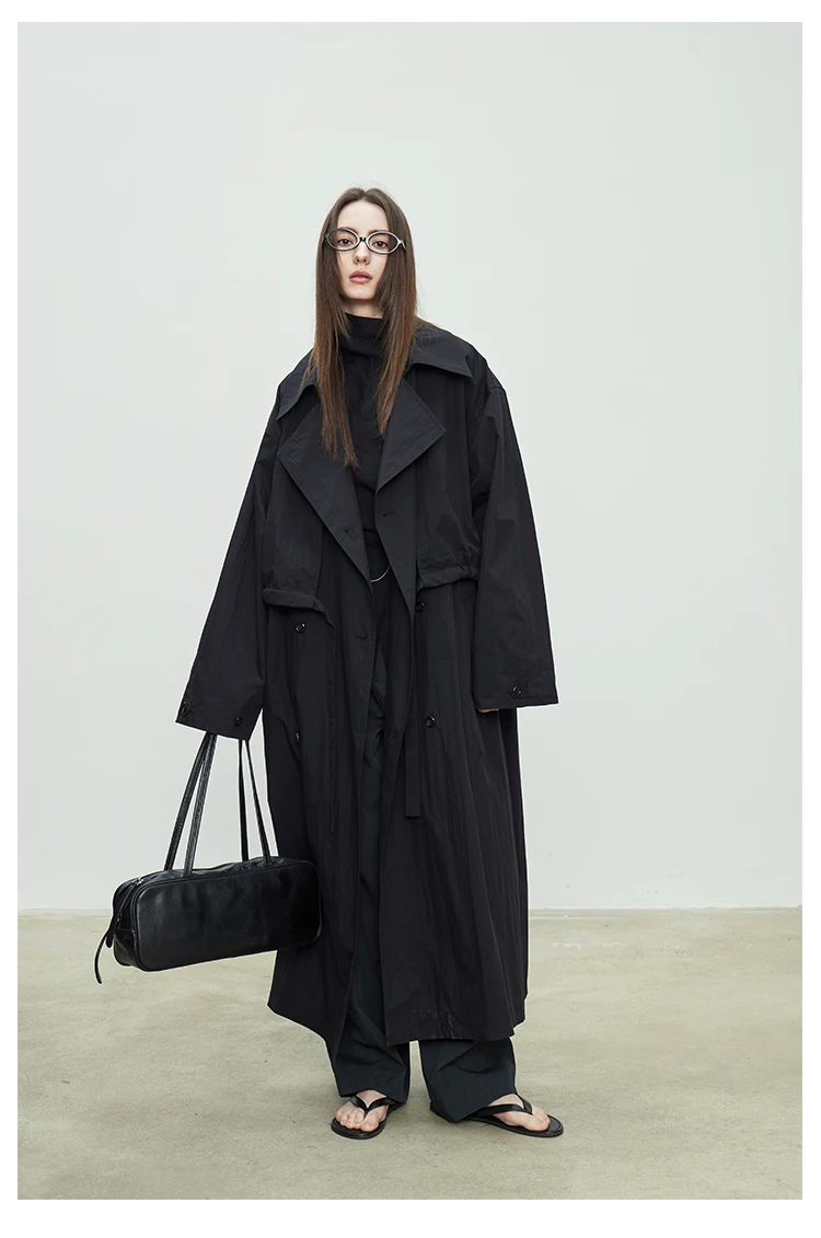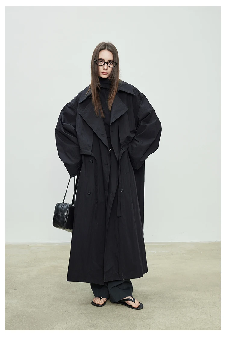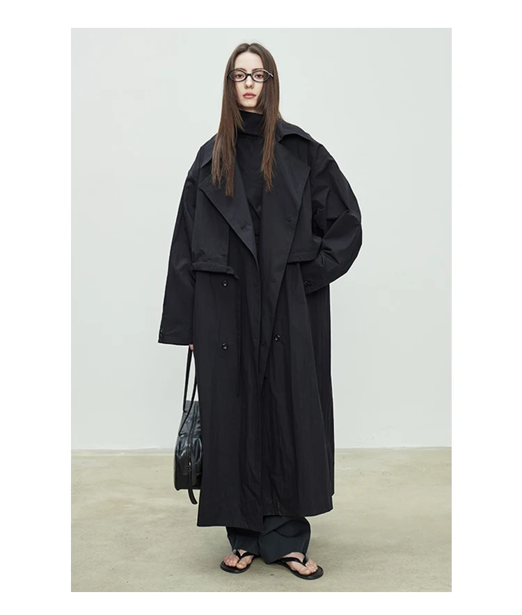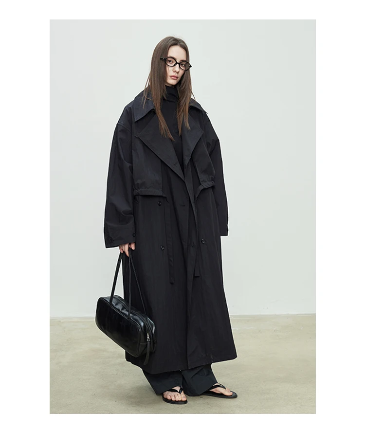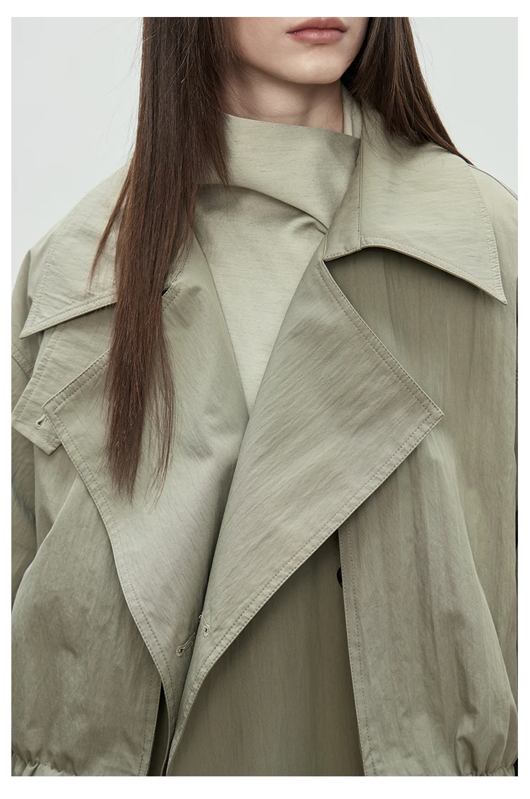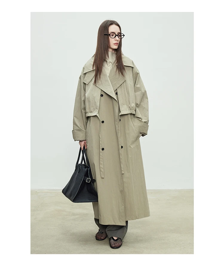 معطف Lautaro طويل كبير الحجم من الكاكي لربيع وخريف المرأة الأوروبية العصرية غير الرسمية فضفاض مزدوج الصدر 2025