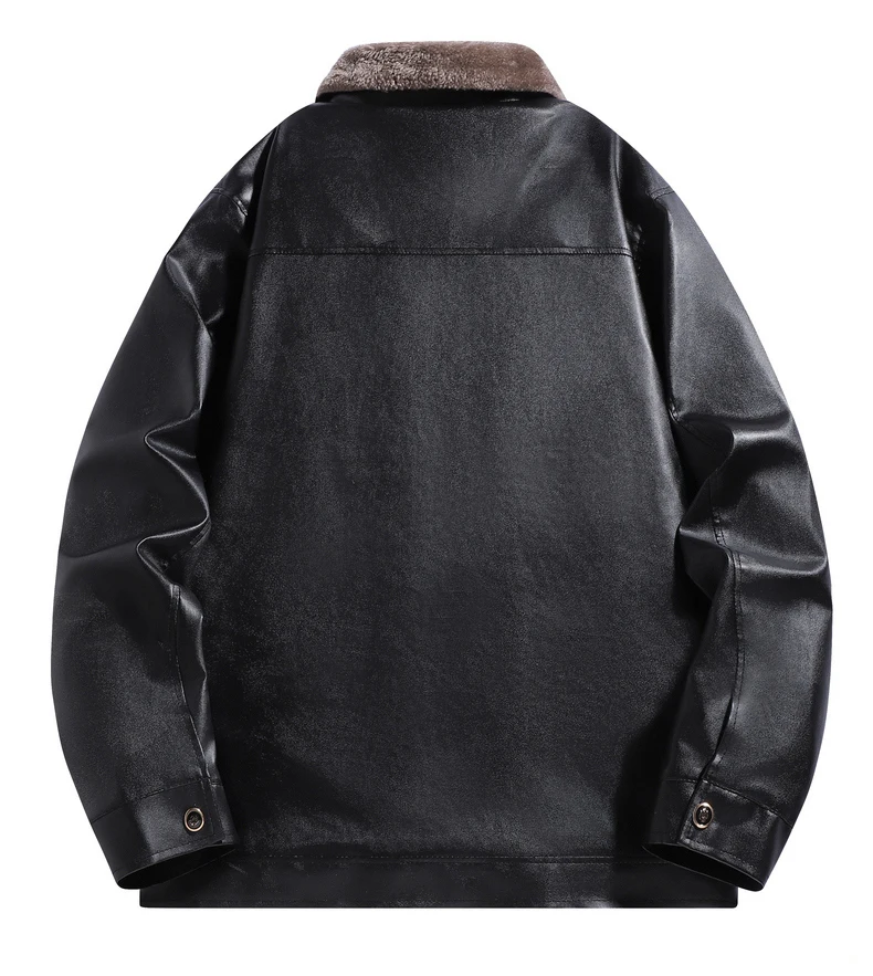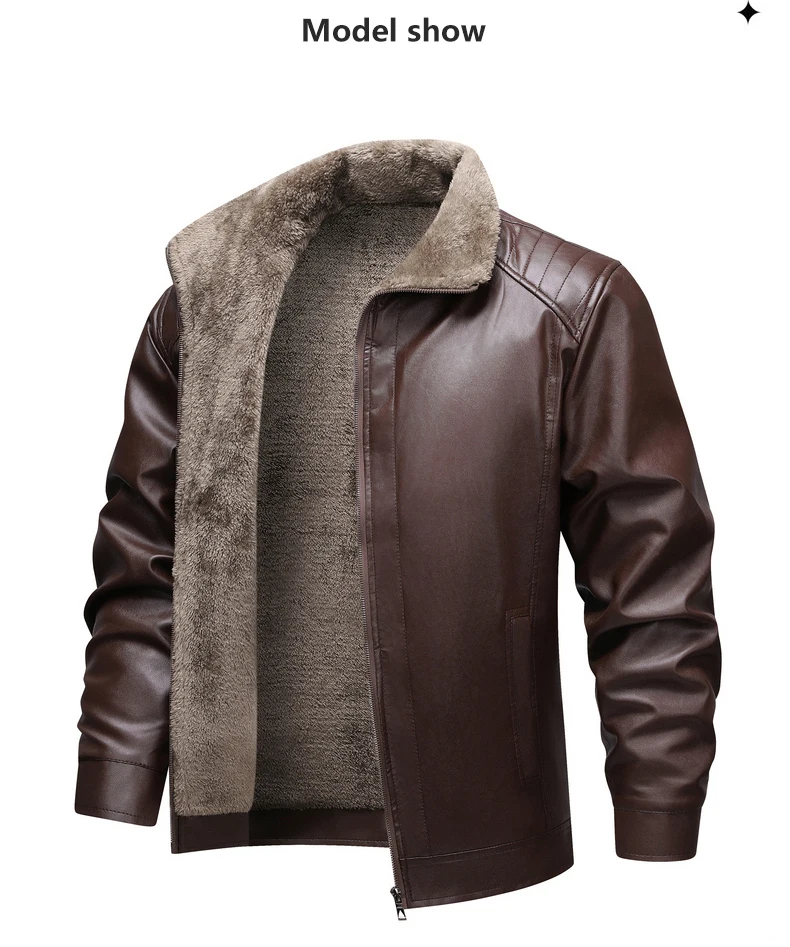 جاكيت جلدي رجالي شتوي مبطن بالصوف جاكيتات دراجات نارية عصرية جاكيت دراجات نارية معطف جلدي صناعي ملابس خارجية ملابس كاجوال