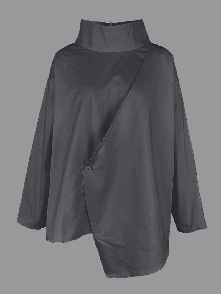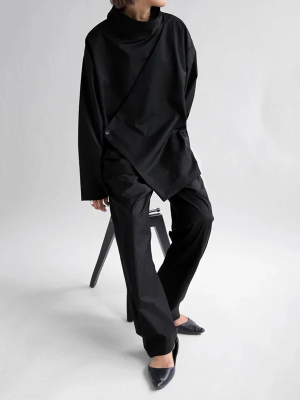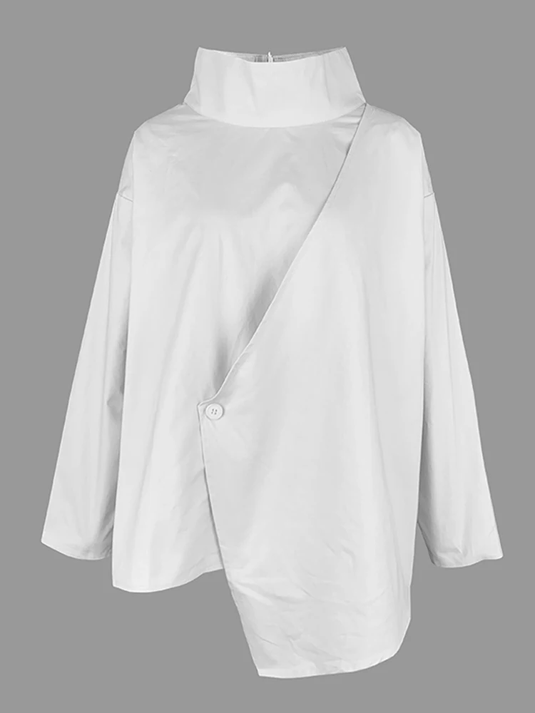 تي شيرت نسائي جديد من Gymystars 2025 بأكمام طويلة ورقبة عالية، مناسب للخريف، بأزرار، كاجوال، بتصميم بسيط