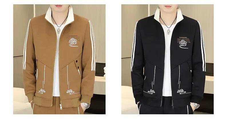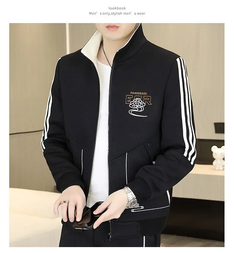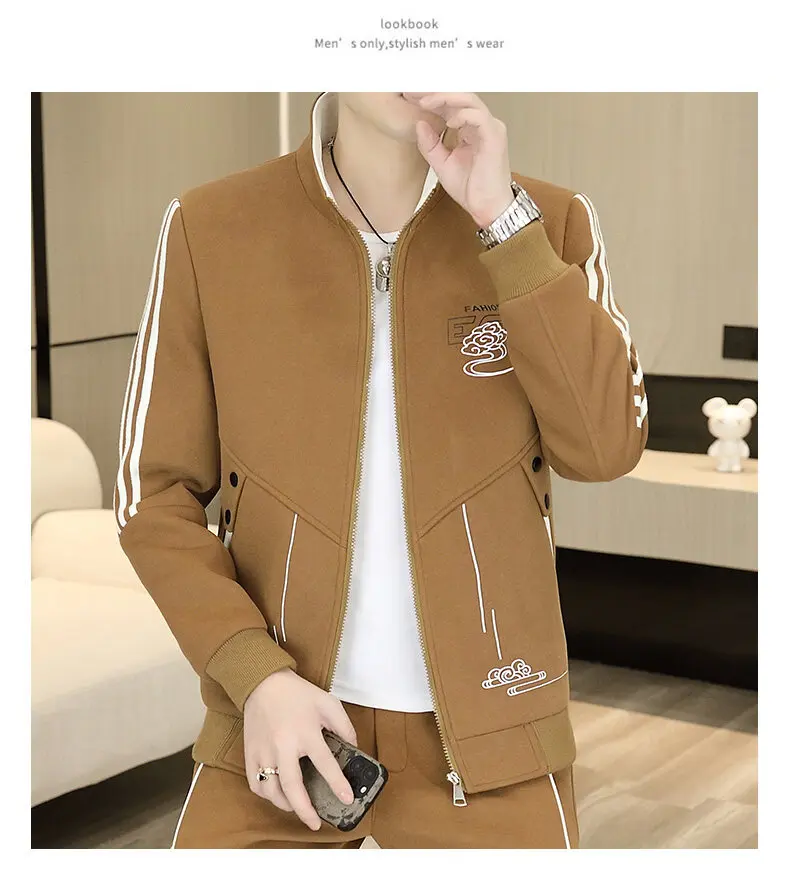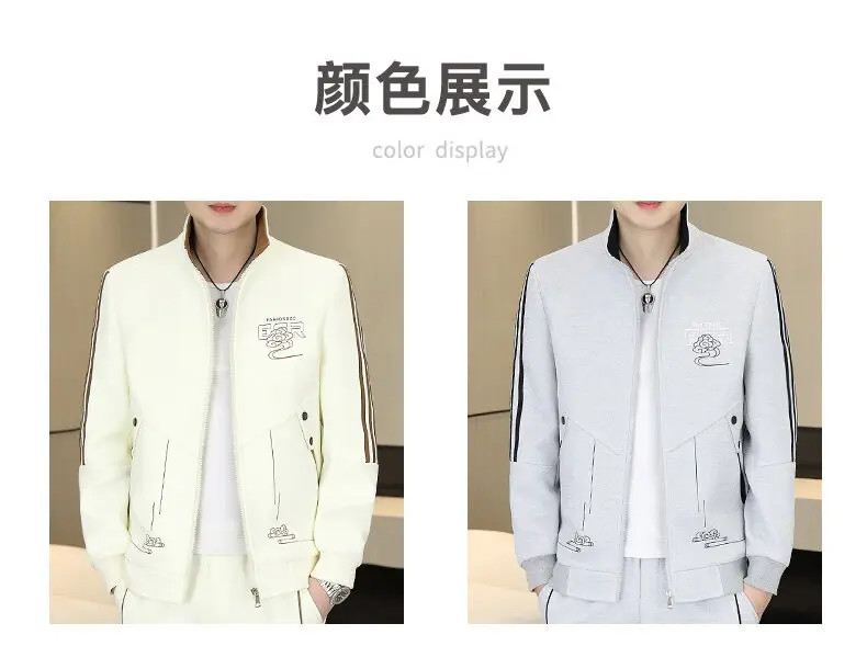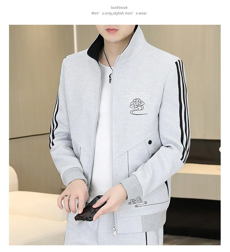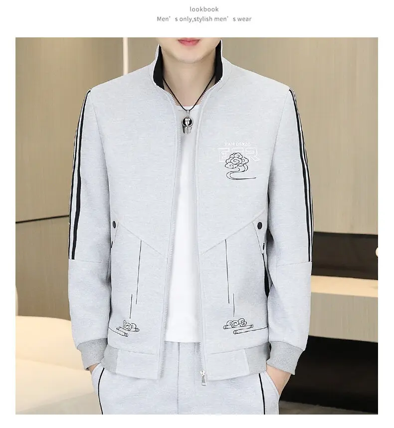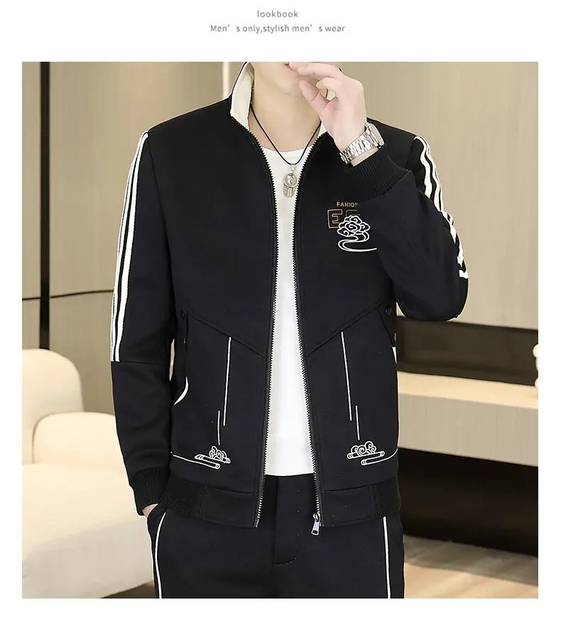 جاكيتات عصرية للرجال لربيع وخريف، معطف مطرز مطبوع بياقة واقفة، معاطف فضفاضة بأكمام طويلة، بلوزات كاجوال
